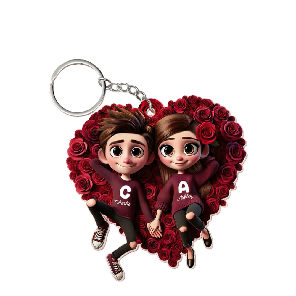 NewPersonalized Acrylic Keychain, Rose Heart Couple Design, Gift for her, him, Couple