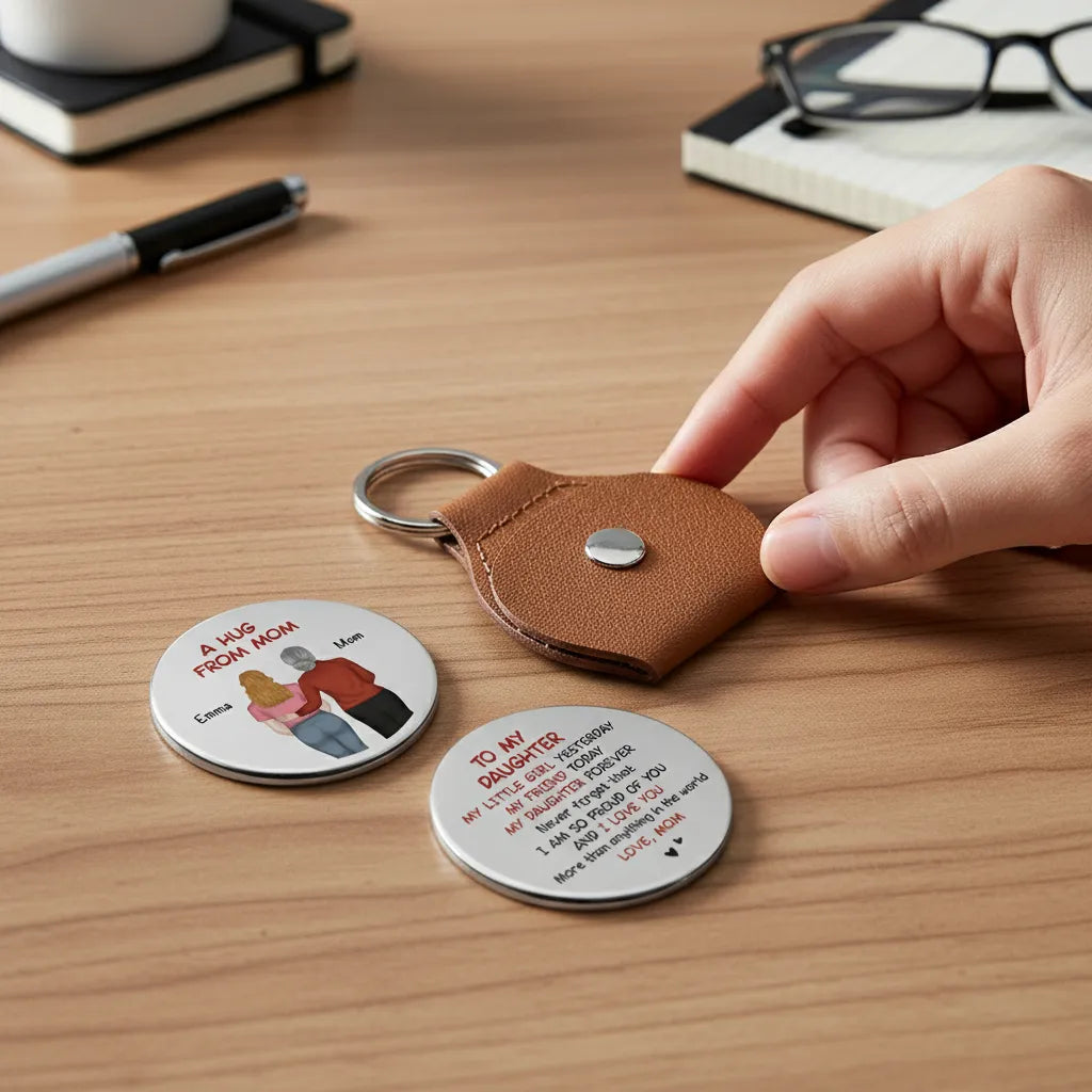 Small enough to slip into a pocket, purse, or backpack, this token keeps mom's hug close throughout the day. Its thoughtful design invites daily touch and serves as a constant reminder of family bonds and maternal affection.