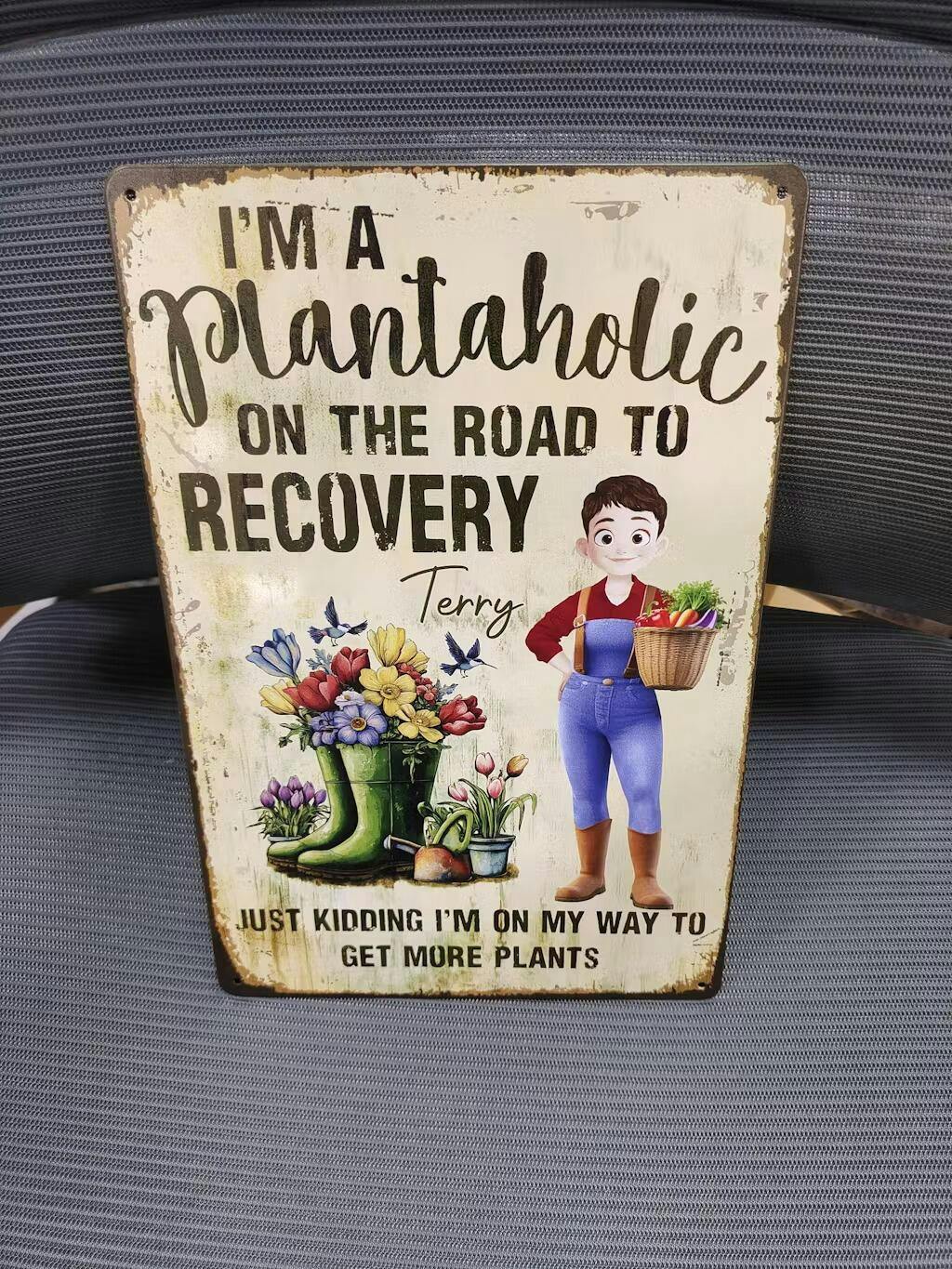 Custom Metal Garden Sign - Plantaholic on Recovery